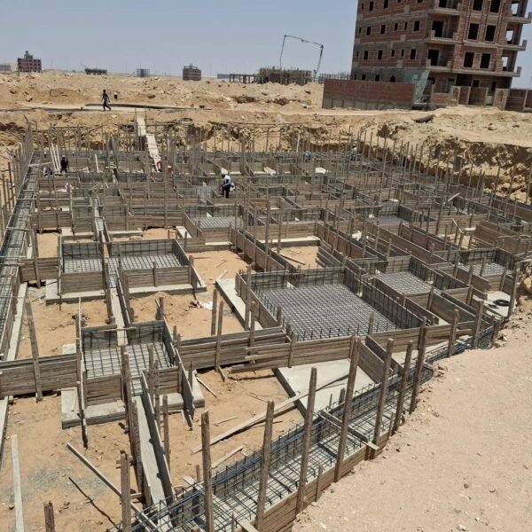 تم الانتهاء من القواعد الخرسانية